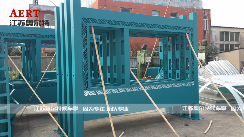 下面為生產中的視窗部分。已經噴好漆的箱體部分已經可以看出候車亭的大概樣貌。